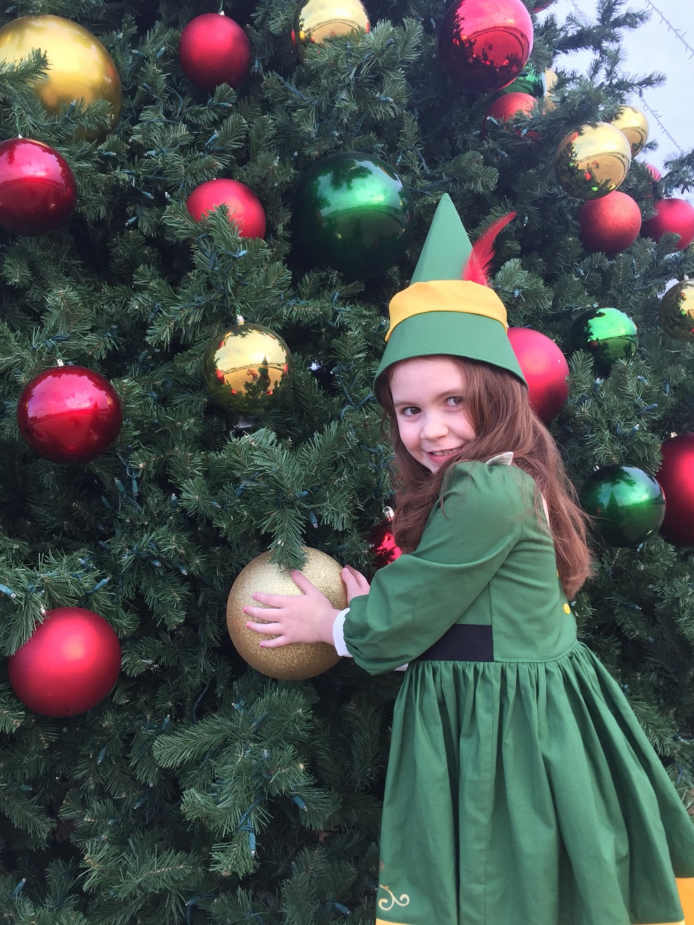 Elf is seriously a favorite in our house, we watch it at least once a week in December. I had this vision in my head for my daughter and started sewing her dress first. No outift is complete without accessories! So, I decided she needed an oversized elf hat to “top” it all off! Here’s how I got the look.