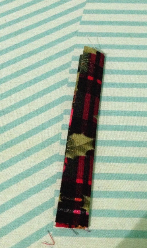 original center crease we made will be along the right side and the two folds will be lined up along the left side. Repeat this step for both of the straps. Sew down both long