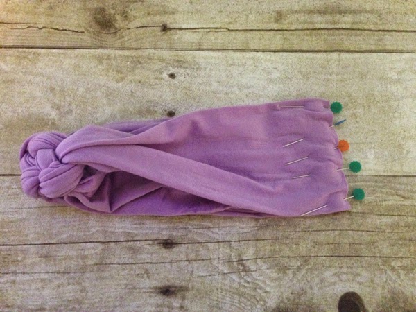 Place one of the pinned sides on top of the other and pin them together. You can now sew down the pinned ends and flip it right side out. Wasn’t that a super easy headband to make?!