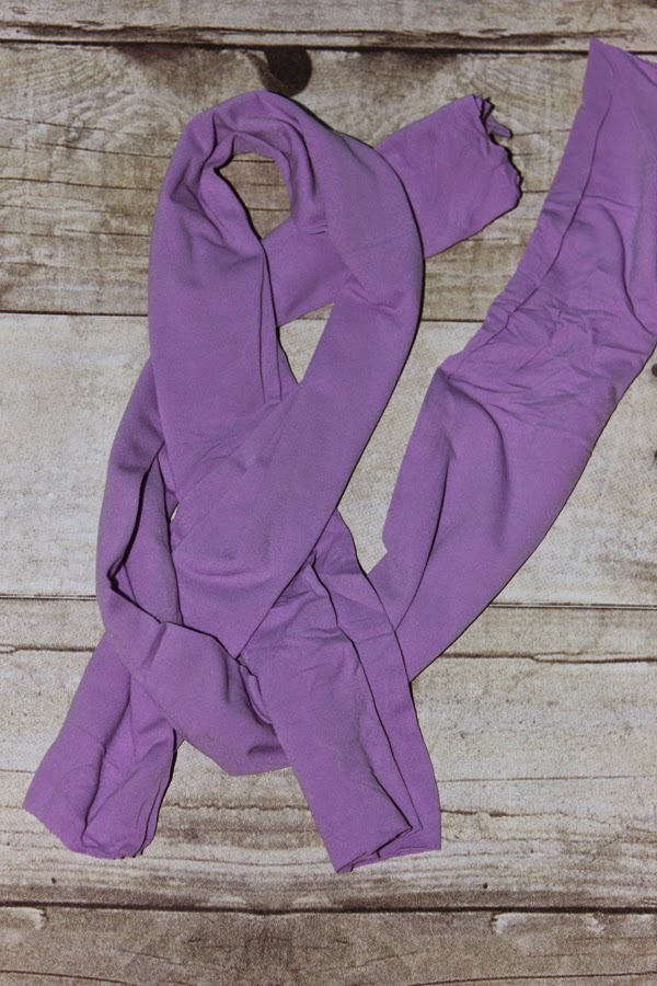 To get started first you’ll need some women's colored nylon tights. The tights have lots of stretch and they won’t fray. I like to get my tights from Target. They have tons of colors to choose from, and if you’re lucky sometimes you can get them on clearance!