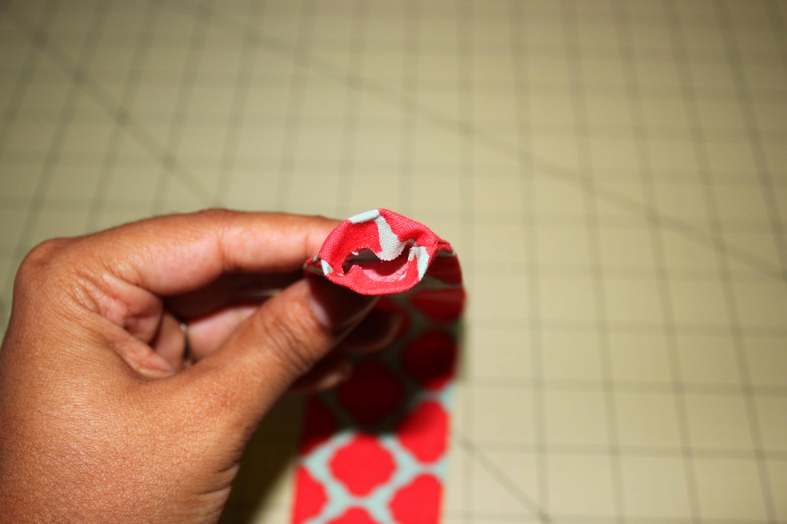 Step 7: Using a dowel or chopstick turn your bow piece right side out and iron. You can