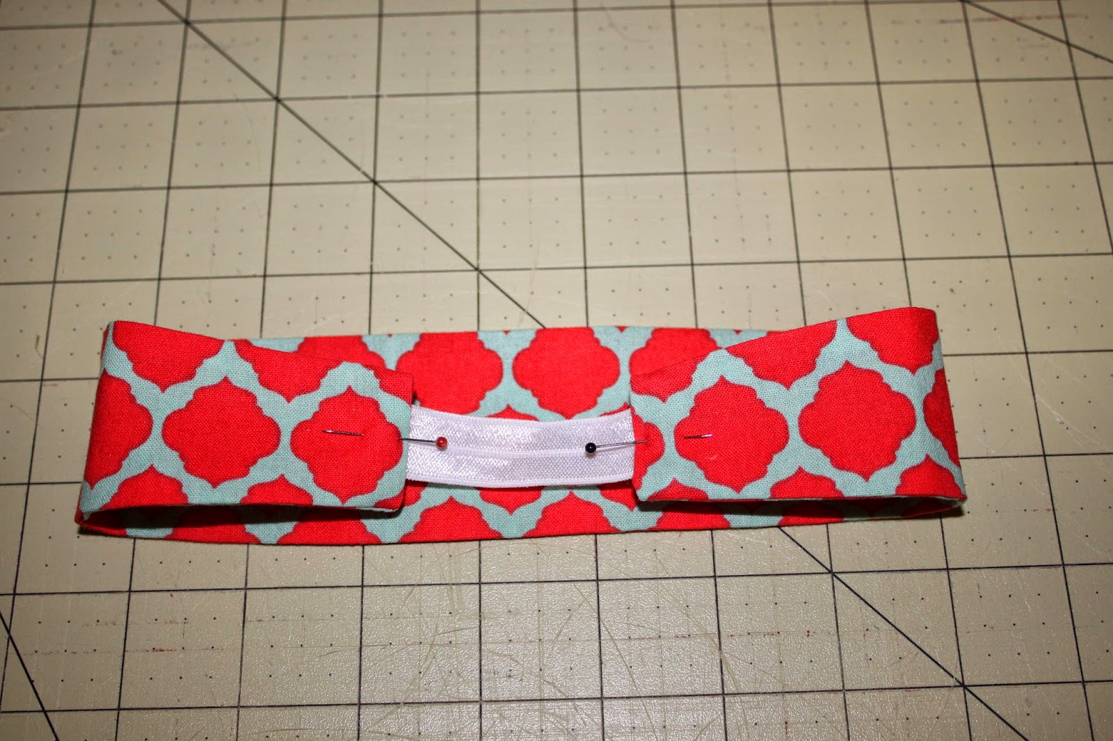 headband and pin in place. Repeat with the other end. (Fold over elastic has a right side