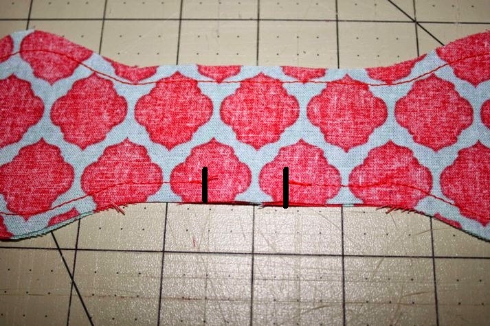 bow except for a 1" section in the center, as shown below. You'll need this 1" opening to turn the bow right side out. Now clip the curves of the bow.