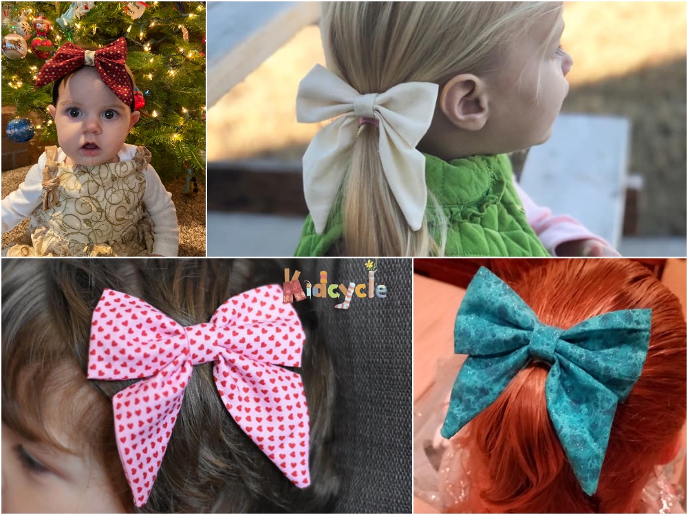 It includes options to make the bow on a hair clip or elastic headband, so it will fit any size, babies to adults!