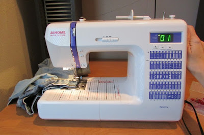 After sewing the bottom and sides, go back and finish the raw edges using a zigzag stitch. You can use your serger if it's strong enough but my serger doesn't like denim layers. With the zigzag stitch you still may need to handcrank again.