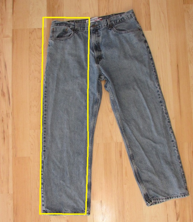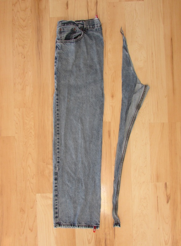 For one bag you will only be using half of the jeans. The photo above shows the portion of the jeans you will be using. I usually like to use the left side (as shown here) because on the back of the jeans it will include the brand tag on the waistband, which looks pretty cool.