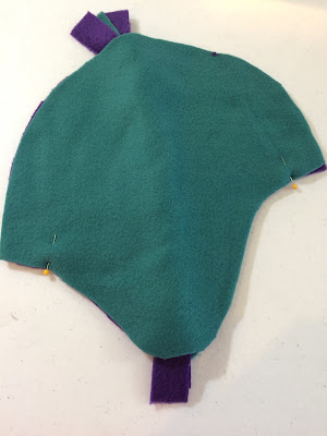 Pin the loose end of the braid to the right side of your main fabric, at the ear curve. Repeat on the other ear.