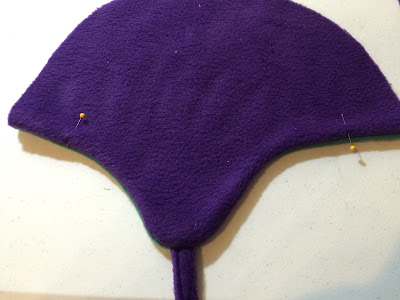 Turn the hat out and topstitch the curve, making sure not to go past the pins again. Repeat with the other side of the hat.