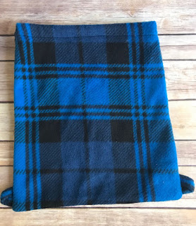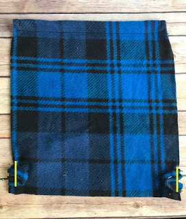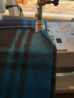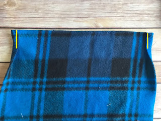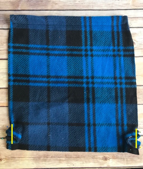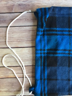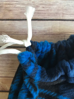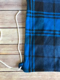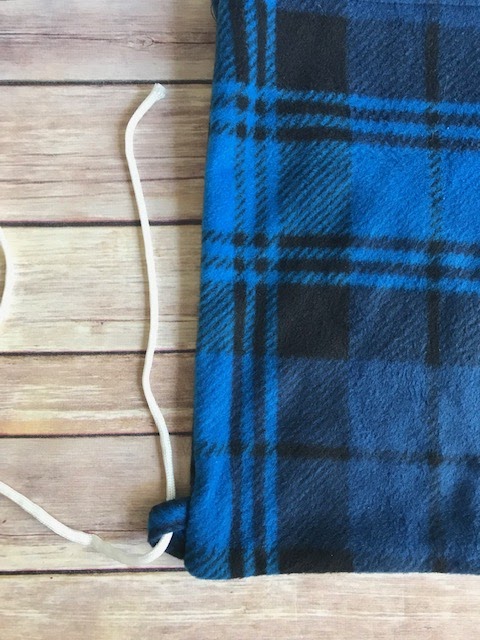 Step 1: First we will create the casing for the cording. Start by folding the top corners in .5" toward the wrong side of the fabric. Sometimes with fleece there is not really a "wrong side" depending on the fabric, so if it is no obvious, do not worry about that.) Pin and sew in place by sewing 2" down from the top to secure this fold.