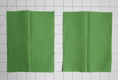 First of all, I took the sample pieces and sewed a regular seam connecting two of them together. I made all six sets exactly the same, and their "right" sides all look like the photo above. From now on you will be looking at the "wrong" side of the fabric, where the seams are.