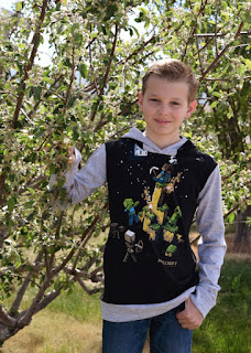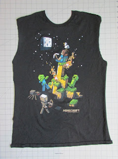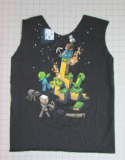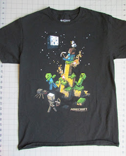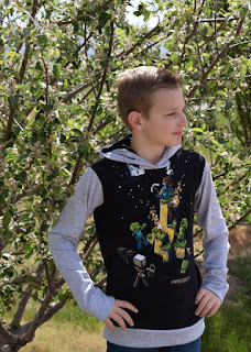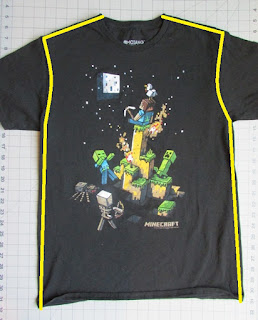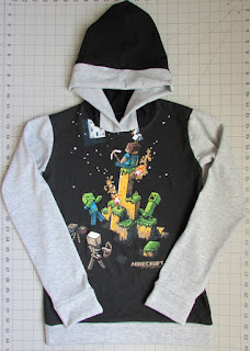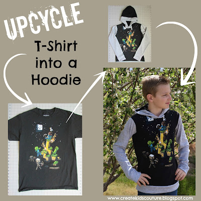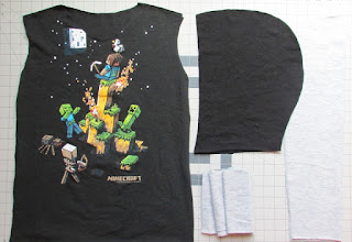 My tween son was excited when he saw this Minecraft shirt at the store but they didn't have it in his size. We bought the largest size available instead, with the promise that I could turn it into a Toby's hoodie for him. We took this t-shirt from an adult Medium size to a tween 11/12. You could do the same thing with child sizes too.