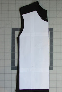 Lay the back pattern piece on the fold. You can put it up high or down low -- wherever it fits best. Just be sure that both layers are fully under the pattern piece.