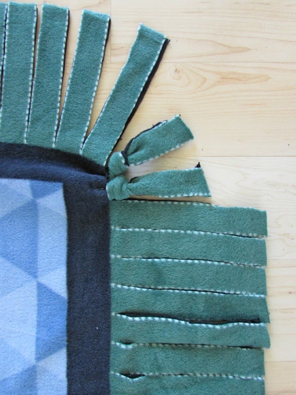 You have probably seen them all over the place, even at your local fabric store. And so have your kids! If you're looking for a fun project to make with your young 'uns that won't give you a headache or traumatize them either, a tied fleece blanket is the perfect project!