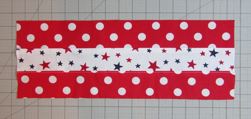Open them up with the red again at the top. Topstitch the seam toward the white strip by sewing 1/8" below the seam.