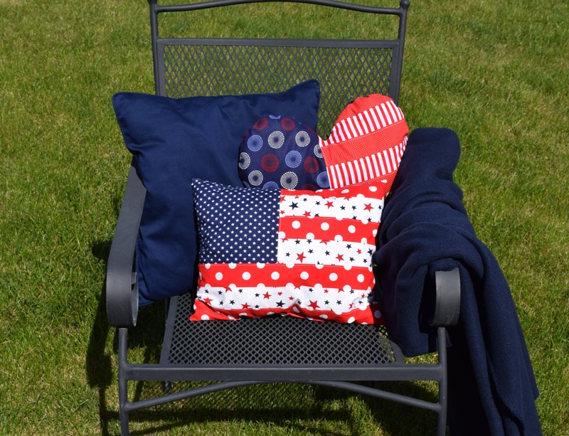 Memorial Day is a big deal in my community (and hopefully yours too) and I love to decorate for the occasion. Many of the families here have been around for generations and we have a lot of veterans to honor. We go around to visit the cemeteries decorated with flags, and I like to make it meaningful for my kids as well. I thought it would be fun to whip up some flag pillows for our house for Memorial Day, and of course these will be perfect for the 4th of July and other occasions too!