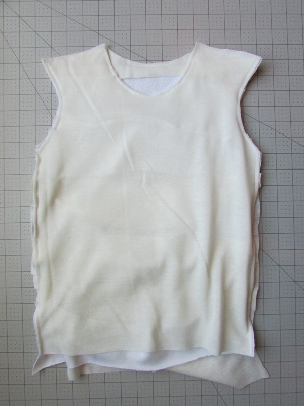 Take the shirt front piece and lay it out on a flat surface to get an idea of how long and wide it is. Measure if you want, or just eyeball it.